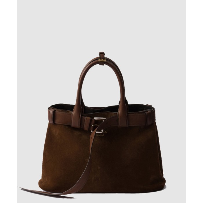 • [PRADA-프라다]버클 미디엄 스웨이드 핸드백 1BA434