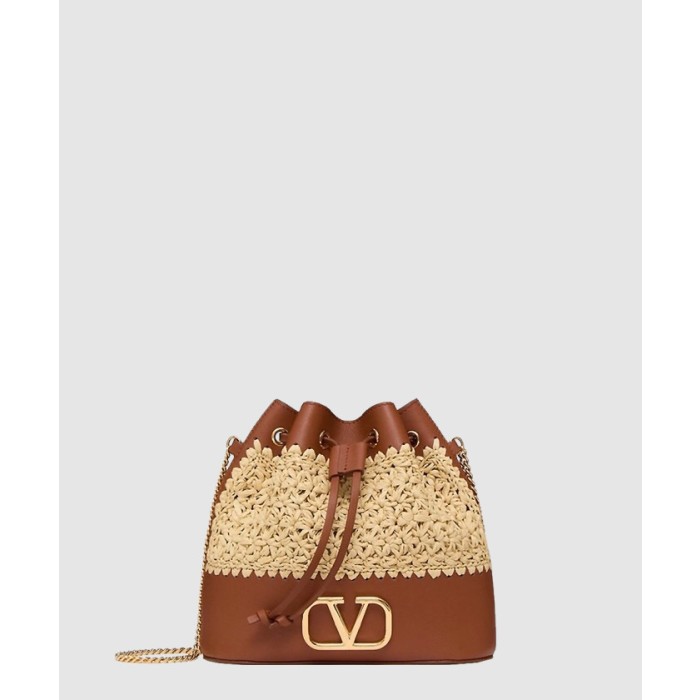 • [VALENTINO-발렌티노]브이로고 시그니처 체인 미니 라피아 버킷백