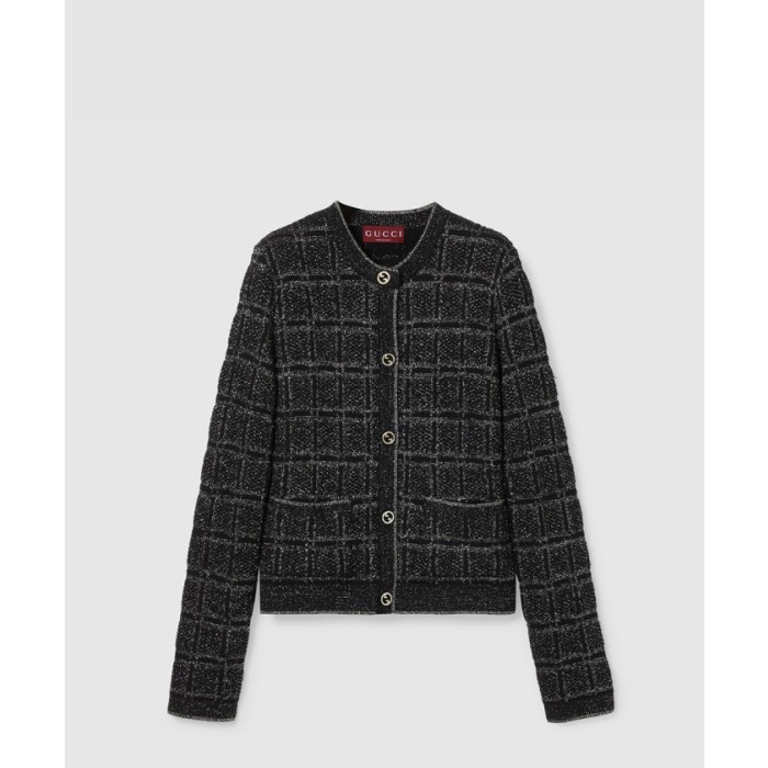 • [GUCCI-구찌]울 및 라메 체크 자카드 가디건 805754