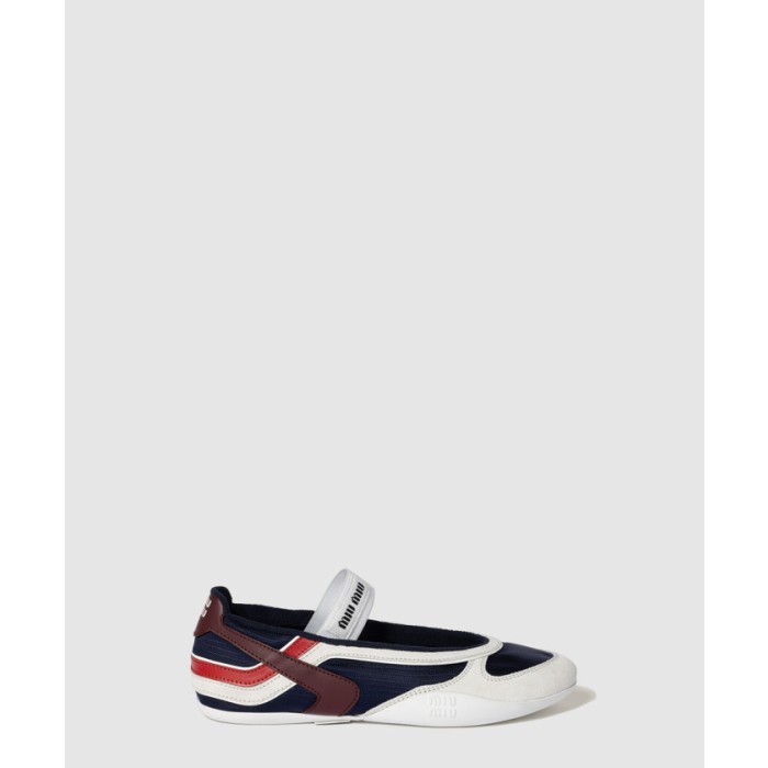 • [MIUMIU-미우미우]체육관 기술 패브릭과 스웨이드 발레리나 5F427E