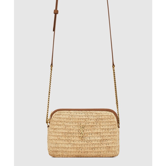 [SAINT LAURENT-생로랑]라피아 및 베지터블 태닝 가죽 소재의 GABY 지퍼 파우치 774293 > 생로랑