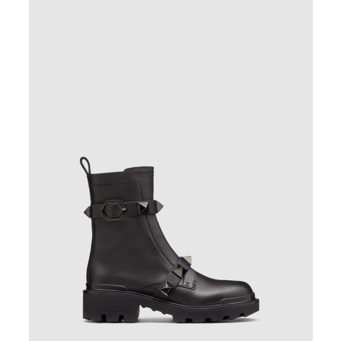 • [VALENTINO-발렌티노]톤온톤 스터드가 달린 송아지 가죽 앵클 부츠
